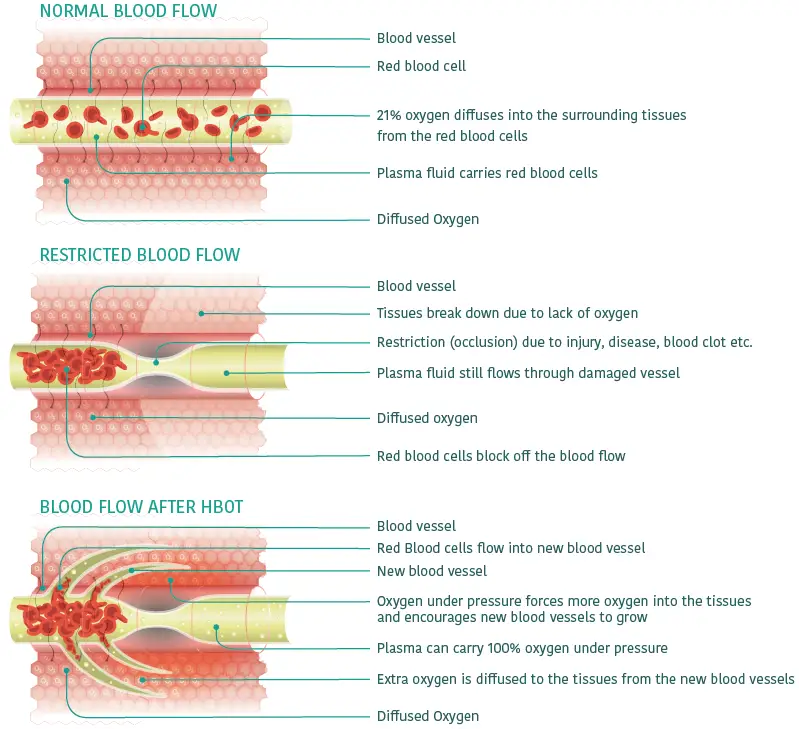 The increase in pressure from your Hyperbaric Oxygen Therapy (HBOT) will increase the oxygen levels in your body and, in turn, increase the available energy in your body to support the brain, heart, and liver. High oxygen availability can also improve immune function and response.